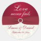 ****PLEASE NOTE that the ribbon and jewels are printed images, and are not real. This 1.5" round red and ivory damask "Love never fails" sticker/envelope seal matches the items shown below. There are other shapes and sizes you can choose, inclusing sizes for on wedding favours. If you need assistance, email niteowlstudio@gmail.com.