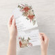 Capture the enchanting beauty of a winter wonderland with this exquisite All-in-One wedding invitation featuring a stunning design of red and ivory poinsettias with holly and pine boughs on a white background. This invitation encapsulates the magic and romance of your special day. The All-in-One wedding invitations are both beautiful and practical by combining the wedding invitation with an easy to remove perforated RSVP postcard. They are also quick and easy to prepare for mailing. Simply address the invitation, fold the back flap and seal with the included clear stickers. Once your guests receive the pre-addressed invitation they simply tear off the perforated RSVP card and drop it in the mail.