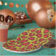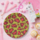 Red and olive green leopard print paper plate that displays an animal print pattern.
