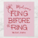 Gather the bride's friends, bridesmaids, sisters, aunts and more for a bachelorette celebration with this trendy red and pink "fling before the ring" wine bottle label. Hand drawn elements like text and a diamond engagement ring along with handwriting style fonts give this label a girly and unstuffy vibe while being trend forward in sketchy doodle style. Set the vibe for the bachelorette party by labelling the house table wine with this fun matching label.