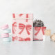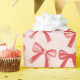 This festive design features bold, hand-painted red bows with soft, watercolor-style strokes, set against a blush pink background. The imperfect brushstrokes add a charming, artisanal touch, while the classic red-and-pink combination offers a modern and playful twist