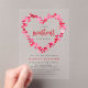 Announce the arrival of your little one with our cute baby shower invitations, featuring the sweet phrase "A Little Sweetheart is On the Way" surrounded by a heart-shaped border of red and pink watercolor hearts. Set against a frosted or transparent acrylic background, these Valentine's Day-inspired baby shower invitations can be personalised with the mother’s name and event details. Perfect for a love-filled celebration, these adorable invitations are ideal for a Valentine's Day-themed baby shower or any shower filled with heartwarming joy.