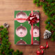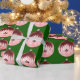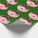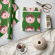 Red And Pink Ornament Green Wrapping Paper