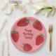 These paper plates features illustrations of ripe red strawberries that look almost good enough to eat. The strawberry graphics are set against a pink background. Your custom text appears at the centre in dark red lettering.