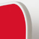 A bright red and pink simple three letter monogram design on a pickle ball paddle.