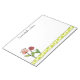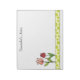 This notepad has delicate pink and red tulips and a green spotted border with text above for you to personalise.