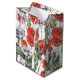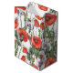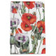 Beautiful pattern features a "field" of red and light purple poppies in full bloom on white background