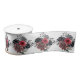This fun and whimsical ribbon features red and silver elegant flowers.