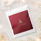 These chic holiday Christmas favour bags say "Joyeux Noël", or "Merry Christmas" in French, but you can change the wording using the template if you wish. The background of the design has a subtle red metallic look and the Eiffel Tower, an elegant divider, and your text appears in silver. (Please note the colours on the bag are not actually metallic.)
