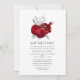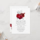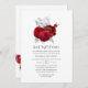 Chic vintage red coloured roses bat mitzvah invitation with accents of silver foil.