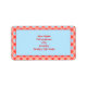 Red and teal blue patterned large return address labels, personalize text to your own information, colour choice options, and sticker label size choice.