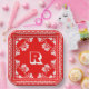 Red and white bandanna handkerchief pattern with a personal monogram.