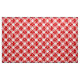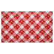 Fabric in a large, deep red and white buffalo plaid pattern, with a flurry white snowflakes