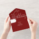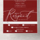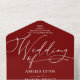 Red and White Calligraphy Script Wedding All in One Invitation is the perfect wedding invitation with no need for separate pieces of stationary! The Red with white script calligraphy is elegant and sophisticated. It has a classical timeless elegance.