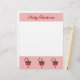 Destei's original illustration of a red and white striped Christmas candy cane treat decorated with a red bow and a Christmas holly / Common holly plant. The background colour is pink on the top and bottom while the middle is white. There is also a personalizable text area that now reads: "Merry Christmas".