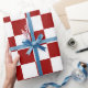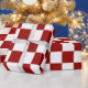Stylish wrapping paper features a bold red and white chequered pattern. Perfect for any occasion!