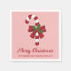 Destei's original illustration of a red and white striped Christmas candy cane treat decorated with a red bow and a Christmas holly / Common holly plant. The background colour is pink. There are also two personalizable text areas.