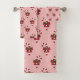 Red And White Christmas Candy Cane Pattern On Pink Bath Towel Set