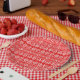 This fun and festive plate features a winter fair isle pattern on a red background. This is perfect for Christmas and the winter holiday.