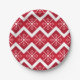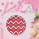 Red and White Christmas Snowflakes Chevron Pattern Paper Plate