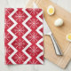 Red and White Christmas Snowflakes Chevron Pattern Tea Towel