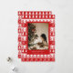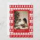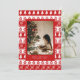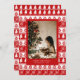 Red and white classical pattern illustration holiday card with one personalised photo in the middle and a serif script font below. Check out our store for more holiday card options.