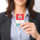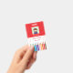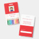 A red and white custom educator ID badge with a doodle illustration of color pencils . You can easily personalize it with the teacher's name , profile picture (for best results use a 2" x 2" photo) , subject taught , year the ID card is valid for , school name and address . There is an extra space in the back allotted for the card holder's signature . Also available in black , blue , green , brown and purple .