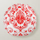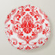 Red and White Damask Floral Elegant Pattern Round Cushion
