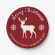 Red And White Deer And Snowflakes Christmas Party Paper Plate