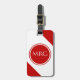 Diagonal stripes of red set on a white background with a centre round medallion to place your initials or monogram.