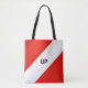 Modern red and white diagonal stripes Tote Bag. Text can be personalised.