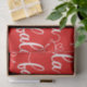 Add a cheerful and playful touch to your holiday gift wrapping with this vibrant red tissue paper, featuring the festive phrase "falala" written in charming white script. Embellished with whimsical hearts and squiggles, this design brings a sense of fun and joy to your holiday preparations.