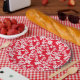 Red and white repeating pattern, featuring delicate white fern silhouettes on a vibrant red background. This design is perfect for adding a touch of nature and elegance to any product.
