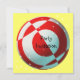 A yellow invitation card with a red and white football, which is covered with white little stars.
