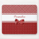 A girly red and white mousepad with cute red and white polka dots on the bottom, chic gingham on the top and embellished with a red ribbon tied into a cute bow. Personalise this stylish design by adding your name. Flat printed image, not actual ribbon.