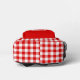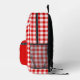 This cute backpack features a classic red and white gingham chequered plaid pattern with a solid matching red pocket. Personalise the monogram on the pocket with your choice of initial.