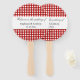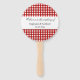 Red and white gingham pattern bbq wedding hand fan. Two shades of red stripes.