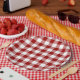 Red and White Gingham Pattern Paper Plate