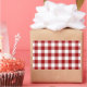 Dark red, white, and light red squares form a bold, buffalo plaid. The red and white gingham pattern makes me think of fun summer picnics.