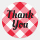 Red and White Gingham Thank You Classic Round Sticker