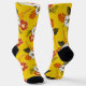 Red and white hibiscus on yellow socks