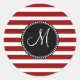 Red and White Horizontal Stripes Pattern Classic Round Sticker