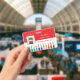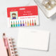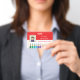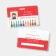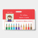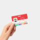 A horizontal red and white teacher photo ID badge with a doodle of coloured pencils at the bottom . Personalise it with the teacher's photo , name , subject or grade taught , the dates the badge is valid for , the name of the school and its address . There is even a white space in the back for a signature or a code bar sticker .