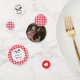 A extra special touch, this customised table confetti features a photo of the engaged couple, red and white gingham, a cute little heart and two different monograms with the their names and wedding date. Scatter on the tables at a casual backyard I Do BBQ engagement party or couple's shower and impress the guests with your attention to detail.