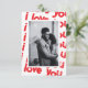A red and white Valentine’s Day note card featuring a heartfelt “I Love You” message with a charming photo design, perfect for expressing your love.