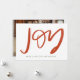 A hand-lettered "JOY" in red on white adorns this festive holiday card. Personalise with your favourite holiday photo on the back.