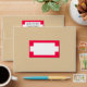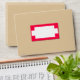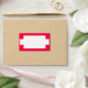 An envelope with a stylish black and white address panel with a drop shadow which gives the illusion of a stick on label. A smaller version of the label is repeated on the back which can be customised with your return address.