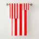 Red and White Large Size Vertical Stripes Bath Towel Set