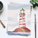 Red and White Lighthouse | Beachy Ocean Watercolor Postcard