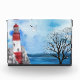 Red and White Lighthouse Nautical Watercolor Scene Photo Block